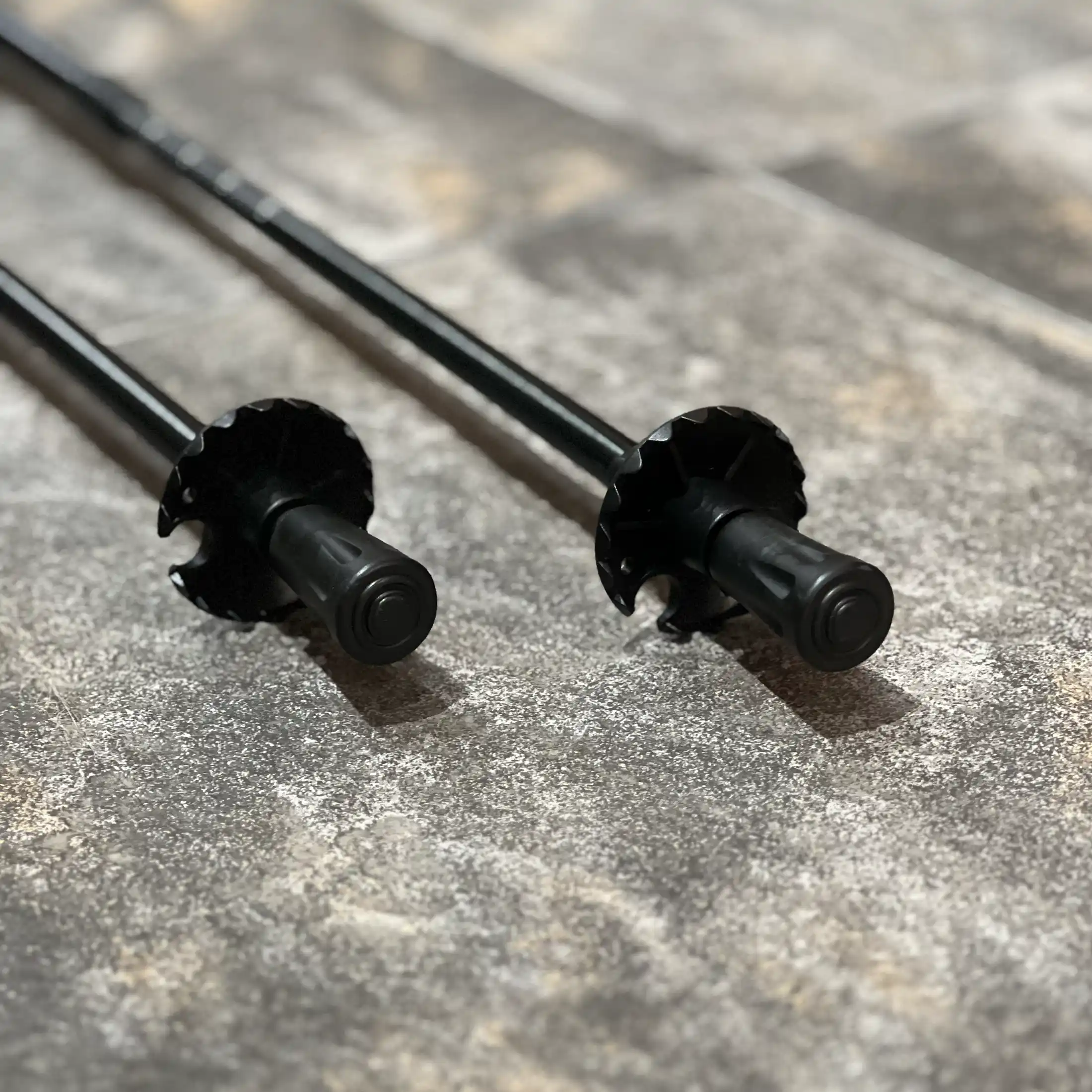 O formato redondo garante uma área de contacto uniforme, aumentando a estabilidade e a tração em superfícies como asfalto, pedra ou caminhos compactos. Isto reduz o risco de escorregar e melhora o controlo do bastão em terrenos mais exigentes.